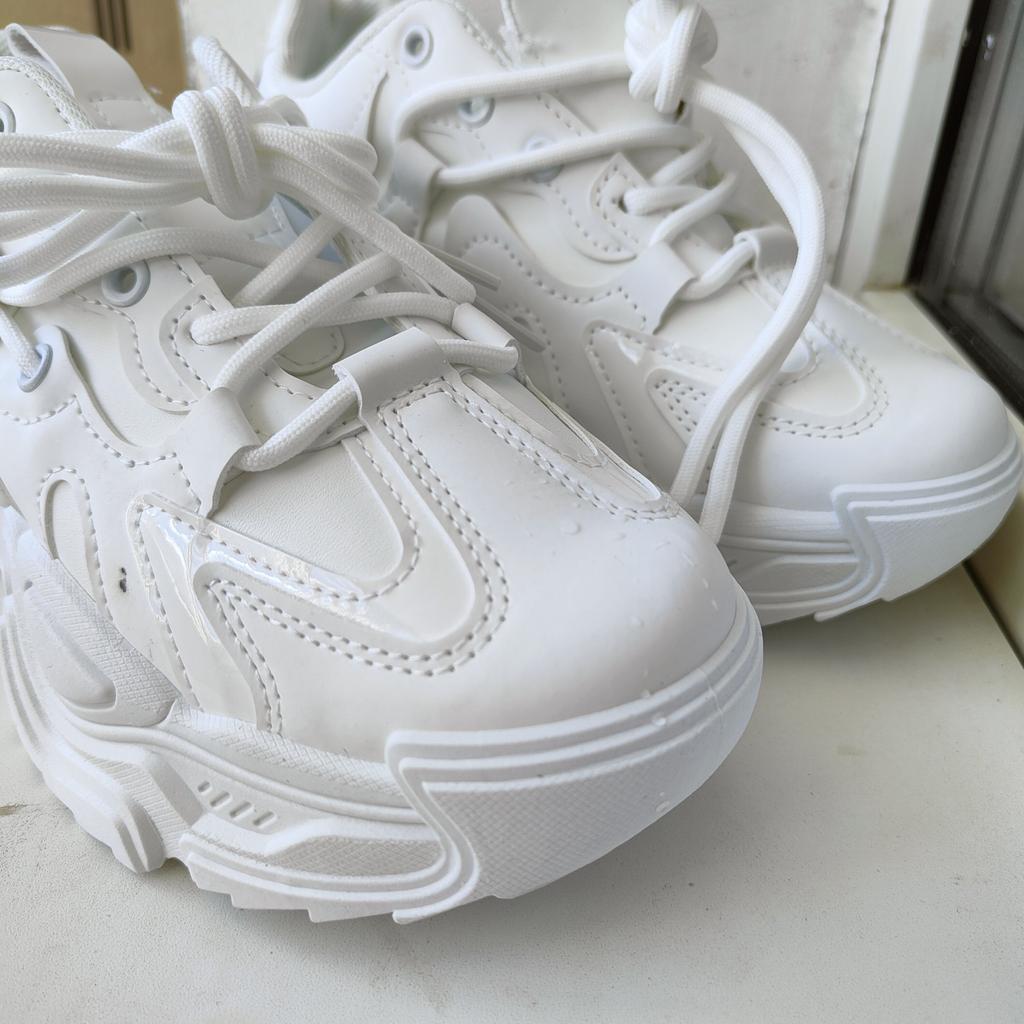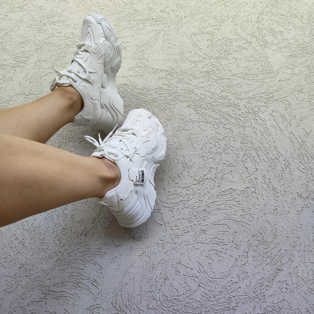 Snow-white sneakers. The seller has these sneakers in three colors. I took the size 36 for my 36. So I can safely say that the size grid corresponds to the seller's description 👍 Will fit a wide leg. Sneakers are comfortable and do not rub ♥️ They have a high platform and I like it. If you are short, these sneakers will make you taller . These sneakers are suitable for cold spring and autumn. The seller packed it securely, put hard inserts inside the shoes so that the shoes would not be deformed during delivery. They look stylish and beautiful 🙂