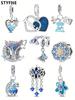 Genuine 925 Sterling Silver Blue Sea World Mermaid Heart Dolphin Collection Charms Love Pendant Fit for Charm Bracelet Beads