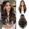 Uzun Dalgalı Sentetik Peruk Kabarık Orta Kısım Kadın Doğal Isıya Dayanıklı Fiber Saç Peruk