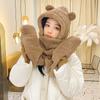 Yeni sevimli ayı kulak şapka eşarp eldiven seti kış kadın kasketleri kapaklar sıcak rahat peluş şapkalar rahat katı polar kız Kawaii mevcut
