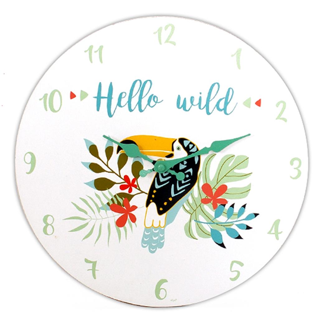 Les Trésors De Lily [A0299] - Çok renkli 'Tropikal' ahşap duvar saati (Merhaba Vahşi - Tukan) - 30 cm