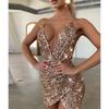Women's Spaghetti Strap Deep V Neck Sequins Glitter Short Dress Sparkly Bodycon Evening Party Club Wear Dress