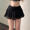 2023 Women High Waist A-Line Mini Skirt Lace Decoration Pleated Printed Punk Style Black Dress Club Party Wear Hot