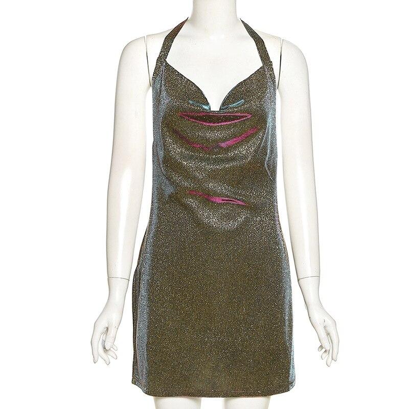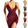 2023 Side Split Backless Dress StreetwearWomen's Sexy Mini Bodycon Dress Cowl Neck Sequins Glitter Halter Dress Summer