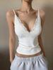 Kadınlar Basit Dantel Çiçek Çukur Şerit İpli V Yaka Askı Yelek Kısa Üst