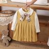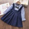 Children Clothing Preppy Style Student Girls Stripe Dress Spring Autumn New Fake Two-piece Long Sleeve Pleated Dresses for Kids