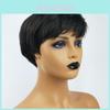 Kadınlar için Kaküllü Kısa Düz Siyah Sentetik Saç perukları Darty Cospaly Perukları