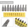 * Uzunluk 50mm. Tornavida kafasında çeşitli gereksinimleri karşılamak için üçgen, Y, U, üç nokta, dört nokta ve oluklu, Çapraz tornavida ucu bulunur.
