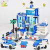Şehir polis karakolu yapı taşları hapishane kamyonu helikopter tekne polis inşaat tuğlaları oyuncaklar çocuklar için