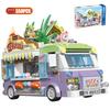638 adet Şehir Sokak Görünümü Dondurma Araba Gıda Mağazası Yapı Taşları Hamburg Tatlı Araç Heykelcik Blokları Tuğla Oyuncaklar Çocuklar için