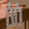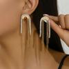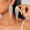 New Claw Chain Alloy Diamond Arched Long Tassel Earring Trendy Women European And American Exaggerated Earrings
