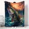 Fishing Blanket Largemouth Bass Jumping Out of Water Blanket Foldrable Throw Blanket Washable Couch Sofa Blanket Beach Blanket for Home Office