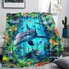 Sualtı Dünyası Balık Yunus Desen Baskı Yumuşak Flanel Battaniye Levha Kanepe Ofis Klima Atmak Battaniye Hediye