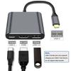 4'ü 1 arada USB C - Çift HD MI Adaptörü, USB-C arabirim bağlantı noktalarına sahip cihazları iki HDM I bağlantı noktasına, USB 3.0 bağlantı noktasına ve PD bağlantı noktasına bağlar. Dört bağlantı noktası aynı anda çalışabilir. Type-C bağlantı noktaları veya Thunderbolt 3 bağlantı noktalarıyla donatılmış ve video ve ses çıkış modlarını destekleyen cihazlar için tasarlanmıştır.