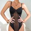Tek parça Backless Bodysuit Kadın Siyah Örgü Patchwork Seksi Bodysuit Clubwear Vücut Femme