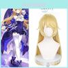 Anime Genshin Darbe Fischl Cosplay Peruk Sarışın Ikiz Kıvırcık Ponytails Altın Düz Isıya Dayanıklı Sentetik Saç Peruk