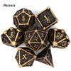 7 Pcs Black Golden Tower Metal Dice Hollow Metal Polyhedral Dice Set Suitable for Role-Playing RPG Board Game Card Game