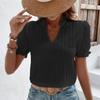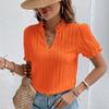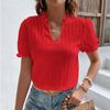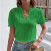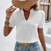 2023 Yaz Kısa Kollu Beyaz Gömlek Kadın Vintage Katı V Yaka Gevşek Gömlek Casual Zarif Dantel Bluz Moda Giyim 28006