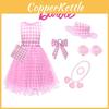 Pembe Tatlı Moda Vintage Ekose İpli Cosplay takım elbise Yüksek Belli Uzun Elbise Kadın Moda Elbise Kadın Cosplay Elbise