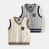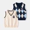 Çocuk Boys Şık Giyim Kolsuz V Yaka Elmas Kafes Baskı Tarzı Örgü Düğme Kapatma Yelek Üst