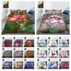 3D Ink Flower Series Bedding Set with Classical Flower Painting Style Quilt and Pillow Covers 2/3 Pieces of Microfiber Fabric Soft Home Decoration