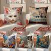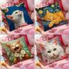 Cute Cartoon Animal Oil Painting Cat Cushion Cover Decorative Office Sofa Pillowcase Home Decor Pillowcase