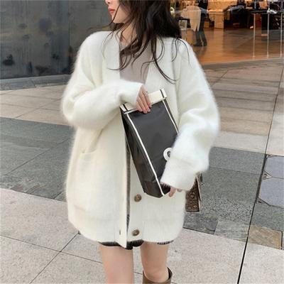Gentle Wind Cardigan Glutinous V-Neck Sweater Coat Female Korean Version Loose Long Sleeve Solid Knitted Cardigan Sweater Top