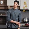 Sonbahar Uzun Kollu Şef Üniforma Standı Yaka Yama Cep Tek Göğüslü Unisex Mutfak Fransız Batı Fırın Iş Elbiseleri