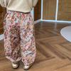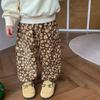 Yüksek kaliteli pamuklu ve fitilli kadife kumaştan yapılmış çocuklar için gündelik harem pantolonlar, sevimli çiçek desenli tasarım, elastik belli pantolonlar, yürümeye başlayan kızlar için yumuşak ve nefes alabilen günlük giyim pantolonları.