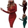Kadın İlkbahar Sonbahar Uzun Kollu V Yaka Düz Renk Bölünmüş Paket Kalça Elbise