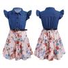 Kız Elbiseleri Denim Çiçekli Salıncak Etek Kemerli Kız Moda Günlük Giysiler