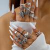 Zarif Vintage El Oyma Yüzük Örümcek Kelebek Oyulmuş Gül Yüzük Seti