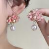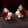 2023 New Imitation Pearl Red Flowers Without Piercing Mosquito Coil Ear Clip Cute Drop Earrings Women