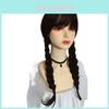 Siyah Çift At Kuyruğu Örgülü Pigtail Peruk