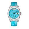 START-Turquoise Men's Watch Diamond Watch Week Function Automatic Mechanical Watch Butterfly Buckle Alligator Leather Strap