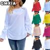 GMXIA Kadın Modası Günlük Düz Renk Desen Uzun Kollu O Yaka Bluzlar ve Gömlekler