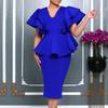 Large Size Women Summer Fashion Ruffled Dress Ladies One Piece Solid Sheath Dress with Belt