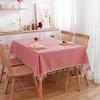 Nokta Ekose Pamuk Ekose Masa Örtüsü Dantel Püskül Dikdörtgen Yemek Masası Örtüsü Toz Kapağı