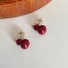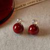New Chelizi Red Earrings Enamel Dropping Oil Earrings for Women's Advanced Sense Colorless Round Ball Earrings