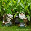 Yeni Reçine Sevimli Bahçe Gnome Heykeli Heykeller Açık Bahçe Süs Için Güneş LED Işıkları Dekorasyon