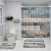 4Pcs Retro Wood Grain Flower Shower Curtain with 12 Hooks Non-Slip Bathroom Rug Bathroom Set with Toilet Lid Cover Pad and U-Shape Mat