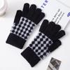 Kadın Eldiven Kış Dokunmatik Ekran Streç Örme Eldivenler Kadın Ekose Tam Parmak Açık Sıcak Eldiven Tutmak