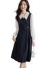 MISHOW Women's French Patchwork Dress 2023 Autumn Elegant Waist Long Sleeve Lapel Side Zipper Fake Two Piece Dresses MXC45L1585