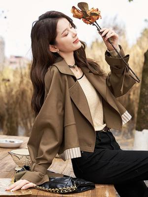 Mishow Kadın Trençkot 2023 Sonbahar Çift Sıralı Çıkarılabilir Yaka Patchwork Moda Rahat Montlar Bol Kemer Palto MXC47W0084
