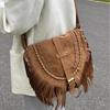 PU Deri Çanta Püskül Kişiselleştirilmiş kadın Çantası 2023 Yeni Moda Perçin Omuz Çantası Hamur Çanta Crossbody Ay Çantası