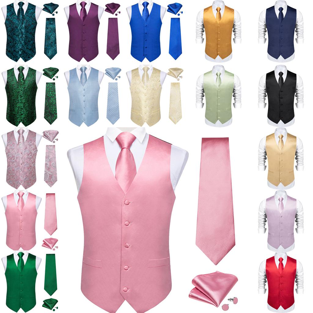 Dibangu Erkek Sarı Paisley Yelek Takım Elbise Yelek Mendil Kol Düğmeleri Kravat Seti Düğün