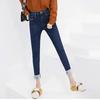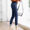 Kadınlar İçin Moda Kışlık Denim Kot Pantolon Kadife Kalınlaştırılmış Ofis Hanımı Yüksek Bel Dar Kesim Kalem Pantolon Günlük Düz Sıcak Pantolon 30097