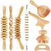 Paket içerir: Ahşap masaj silindiri, ahşap kavisli silindir, uzun saplı ahşap masaj kupası, ahşap mantar baş masaj aleti ve ahşap kazıma tahtası.