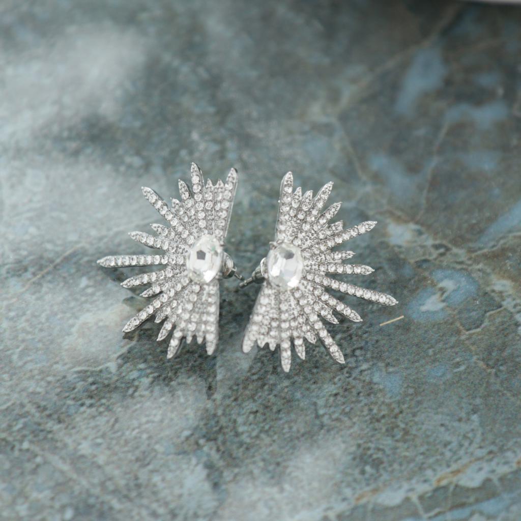 Kadınlar için Büyük Bitkili ve Parlak Zirkonlu Lüks Gümüş Renkli Karanfiller, Moda Takılar, Kore Küpeleri