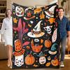 Halloween Pattern Pumpkin Witch's Broom Hat Blankets Velvet Printed Breathable Soft Throw Blankets for Sofa Travel Rug Piece